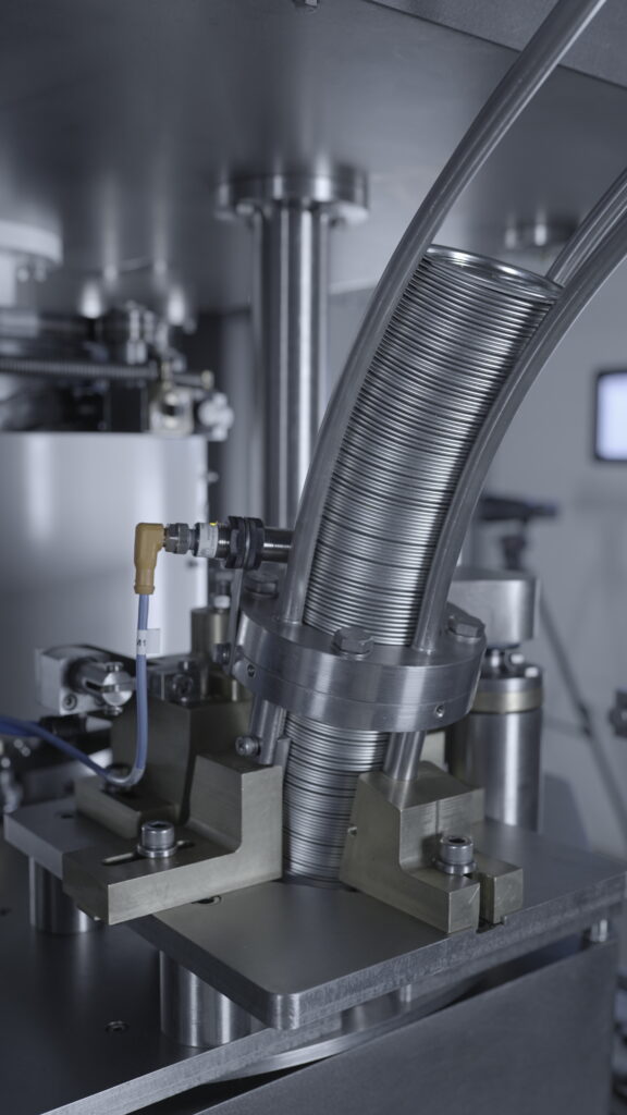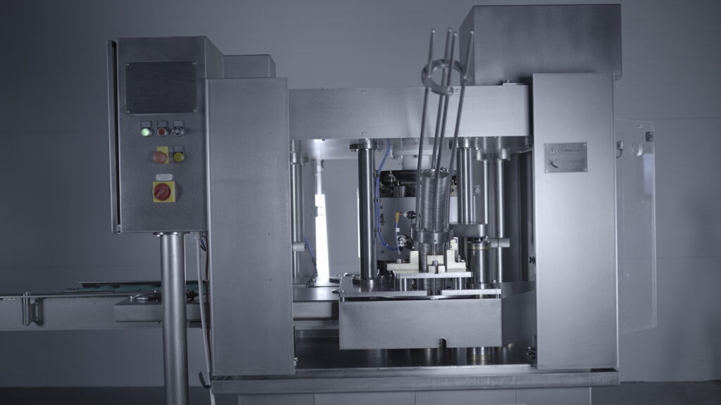 -sposób zamykania: obrotowa głowiczka + obrotowy mechanicznie napędzany stolik (driven lifters), rolki zamykające stoją w miejscu podczas pracy. Puszka kręci się na napędzanym stoliku